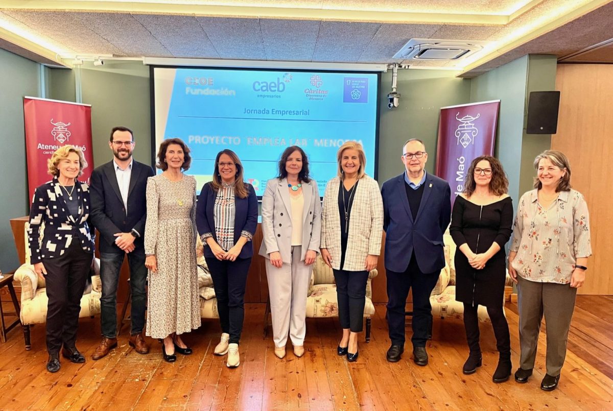 - The event, held at the headquarters of the Ateneu de Maó, was attended by the president of CAEB, Carmen Planas; the secretary general of Objectives and Inclusion Policies, Milagros Paniagua; the president of the CEOE Foundation, Fátima Báñez; the secretary general of Cáritas Menorca, Guiem Ferrer; and the president of the Consell de Menorca, Susana Mora.