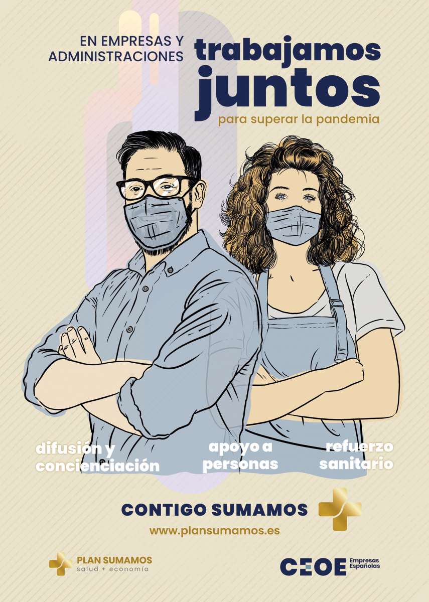 La Fundación CEOE presenta su primera campaña de difusión del ‘Plan Sumamos. Salud + Economía’, una acción que busca visibilizar de qué forma las empresas y las administraciones se han unido para poner en marcha iniciativas para minimizar el impacto de la pandemia en la sociedad española, y animar a que otras tantas compañías se sumen al proyecto.