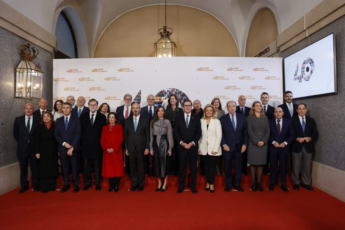 Su SM la reina, Pedro Rollán, Margarita Robles; Alberto Núñez Feijóo; Antonio Garamendi; Fátima Báñez; Ignacio García-Belenguer; Adoración Mateos Tejada; Mariano Rajoy; Ángela de Miguel; Lorenzo Amor; José Alberto González-Ruiz; Inés Juste; Marcos Peña; Marina Serrano; Juan Pablo Lázaro; José María Méndez; Pablo Taboada; Juan Carlos Tejeda; José María Campos; María Aránzazu del Valle; Alejandra Kindelán; Javier González de Lara; Julián Núñez; Santiago Aparicio; Gabriel del Toro; y Pepe Álvarez.